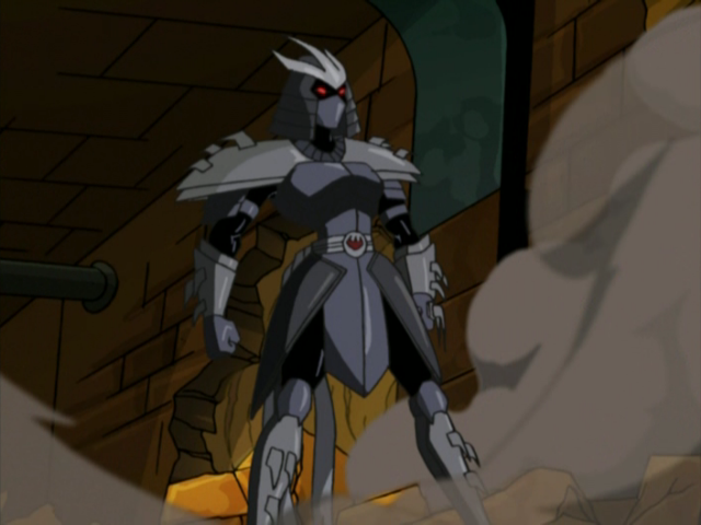 In the same jailbreak, Macbeth beheads the Shredder. However, this Shredder is actually an alien known as Ch'rell. It takes some time for Ch'rell to recuperate, but Karai eventually helps him become the Shredder once again. But the Shredder's lust for power is ever-growing, as he takes over Emperor Zurg's interdimensional transporter.